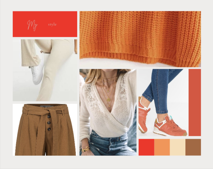 • Maak combinaties van kledingstukken binnen dit kleurenpalet.
