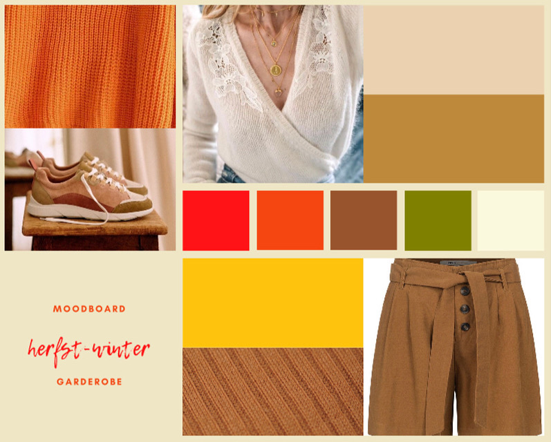 Kleurencombinatie aan de hand van de kleurenwaaier: oranje, warm beige en warm rood is een mooie combinatie voor warme lente/herfsttypes